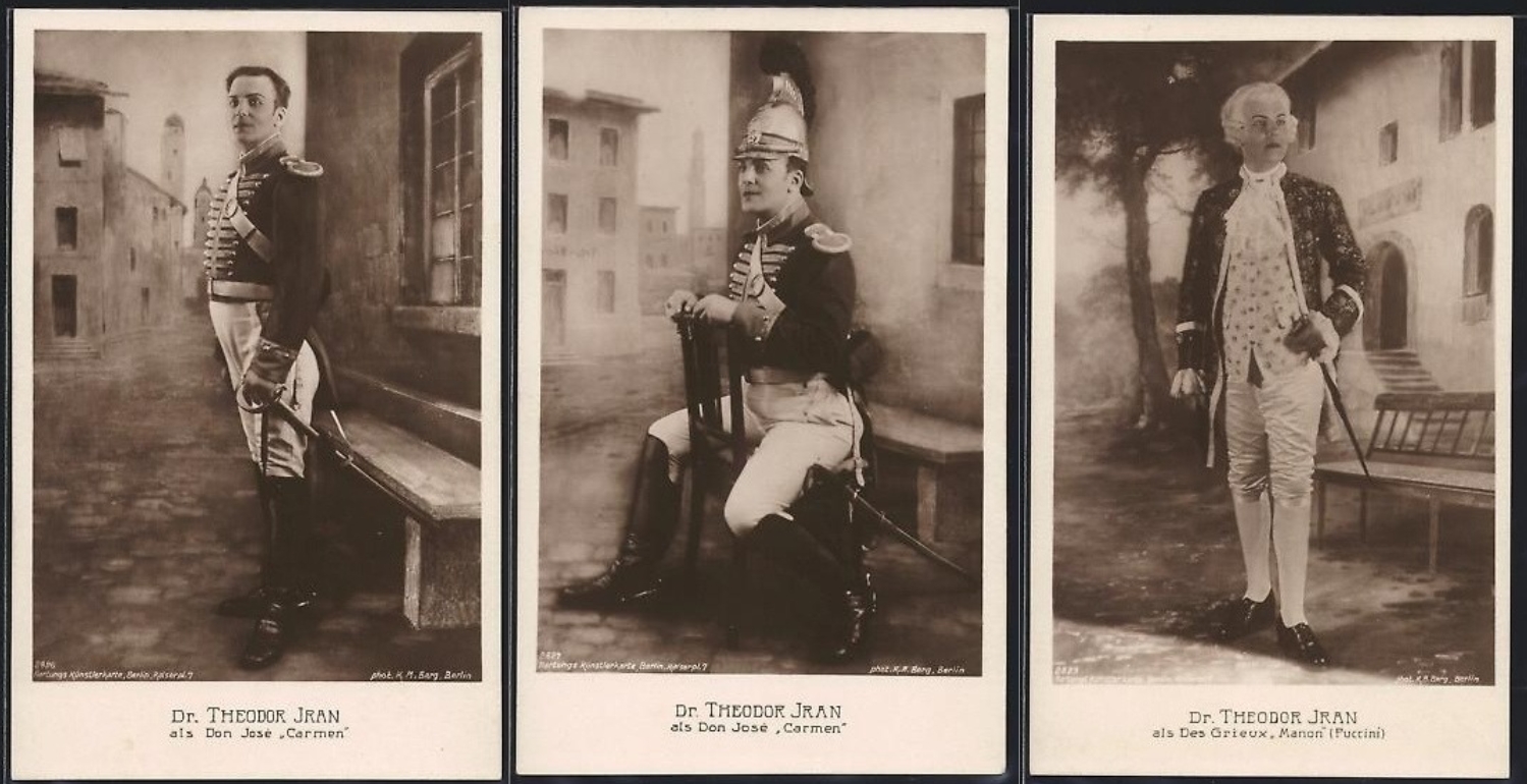 Теодор Пасічинський на поштівках: у ролі Дона Хосе в опері «Кармен» (1 і 2) та у ролі де Ґріє в опері «Манон»