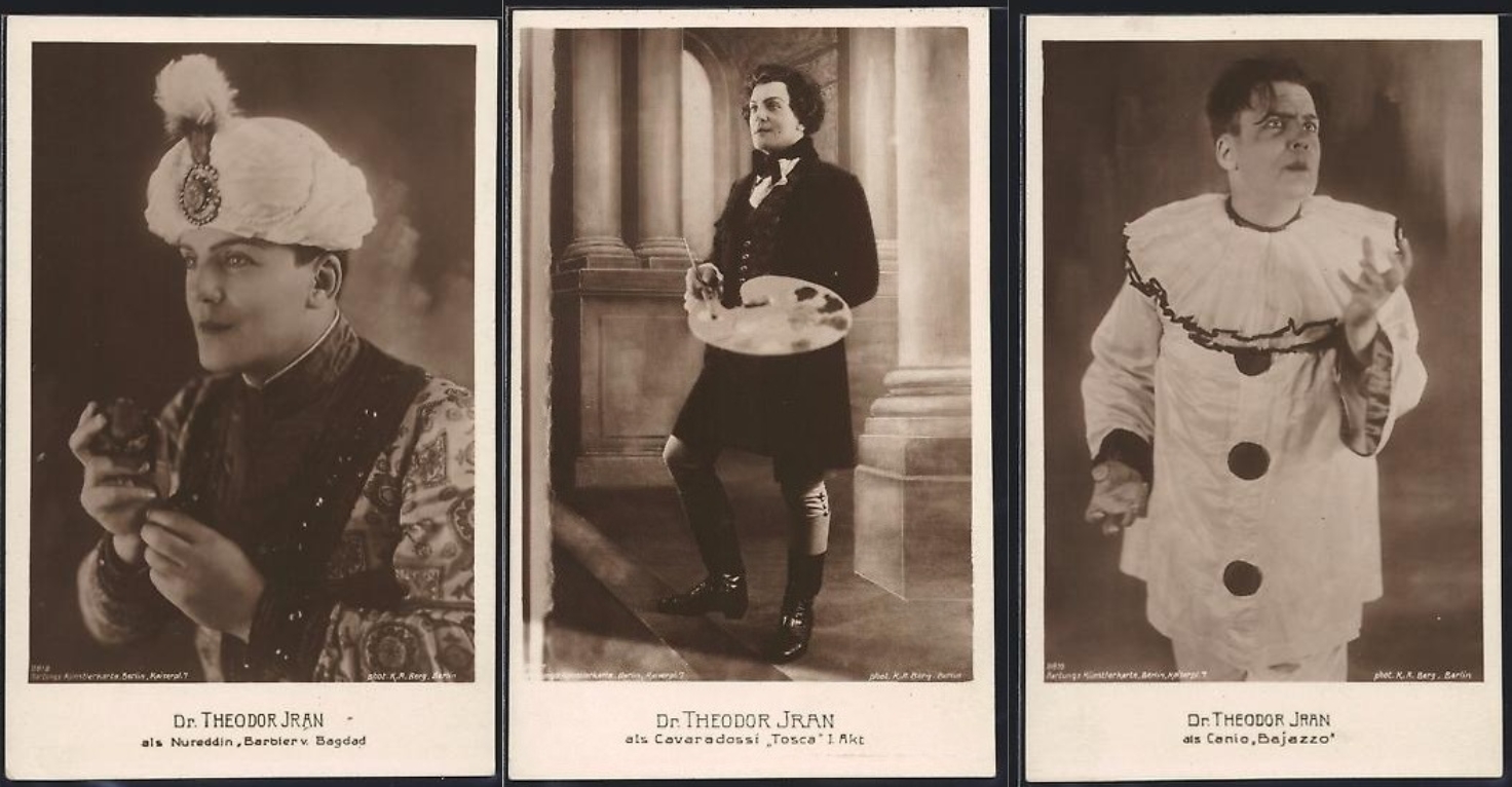 Теодор Пасічинський на листівках: у ролі Нуреддіна в опері «Багдадський цирульник» (1), у ролі Каварадоссі в опері «Тоска» (2) та у ролі Каніо в опері «Паяци».
