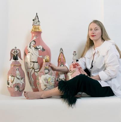 Ніна Мурашкіна серед її ваз "Medusa" and "Number one".