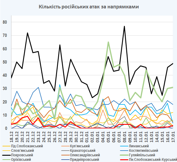 09:05 Інтенсивність російських атак на різних напрямках (за даними зведень Генерального штабу ЗСУ):