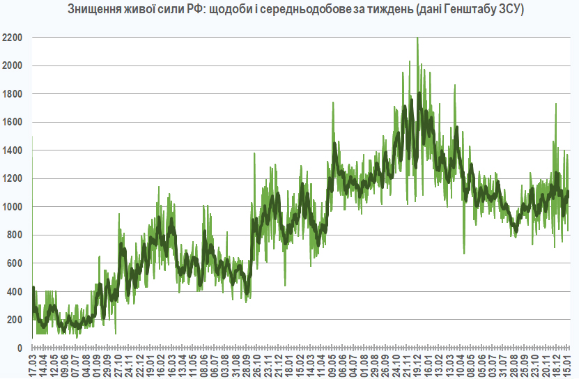 Вчора противник завдав по позиціях українських підрозділів та населених пунктах 90 авіаційних ударів, скинув 239 керованих авіабомб. Крім цього, було залучено для ураження 8071 дрон-камікадзе та здійснено 3845 обстрілів позицій наших військ і населених пунктів, з яких 40 – із реактивних систем залпового вогню.