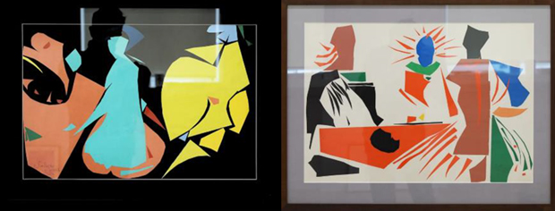 Дві роботи подружжя Лободів, споріднені назвами («Троє» Людмили та «Трійця» Володимира), відсилають реципієнта до математичної дійсності. І хоч розрив корелює з зупинкою, а складка з продовженням, вони спів-мислимі. Складка осмислюється і в математичній площині та математичними термінами французькими (примітка: власне у площині французької мови з’являються поняття на кшталт assemblage, marouflage, bricolage, découpage і, зрештою, collage) теоретиками Постмодерну: «На противагу екстремумам інфлексія (світ може поставати як інфлексія) не має координат: не перебуває ні згори, ні знизу, ні справа, ані не входить у регресивну, ані в прогресивну послідовність. Вона перебуває в стані невагомості».