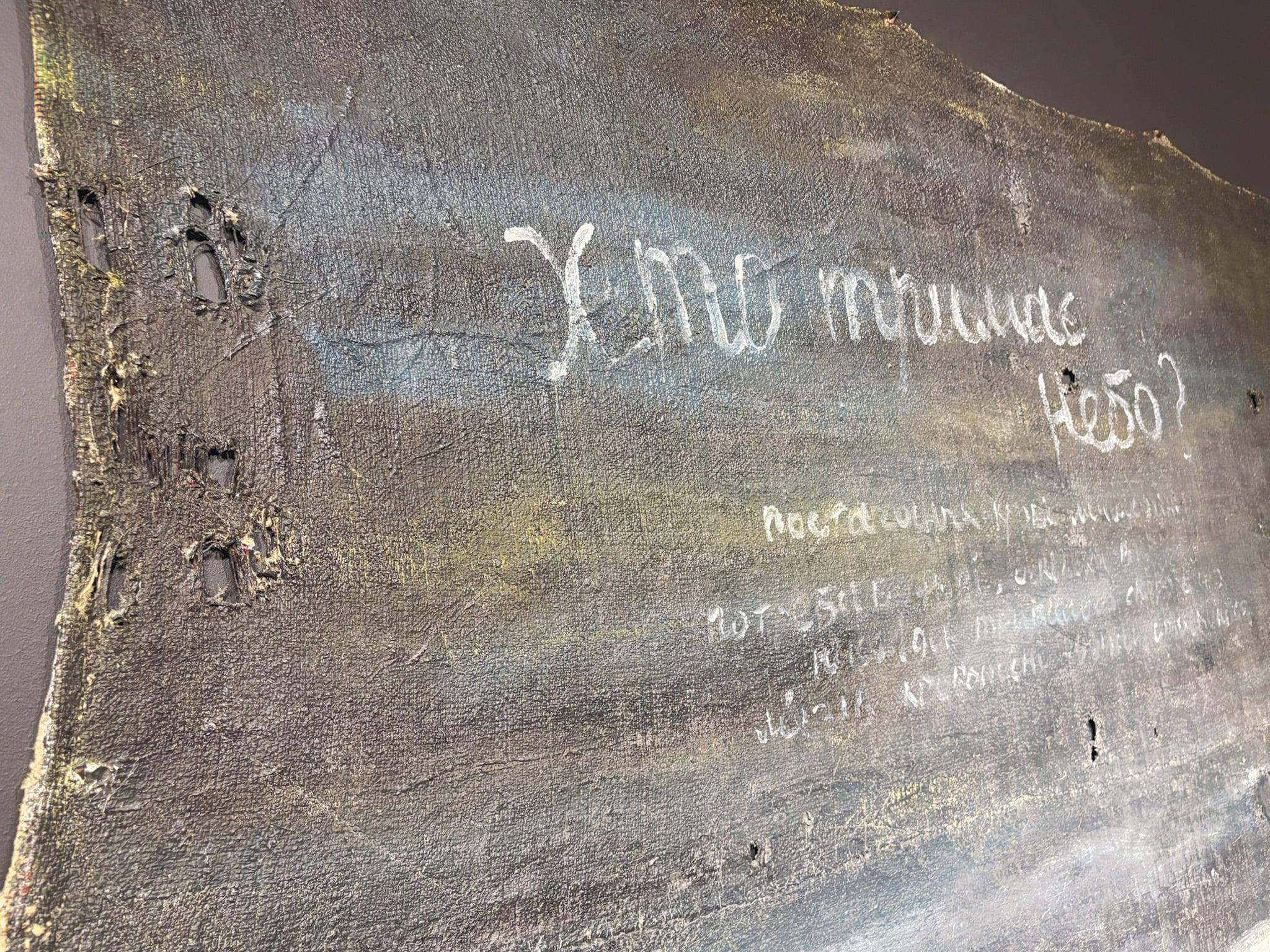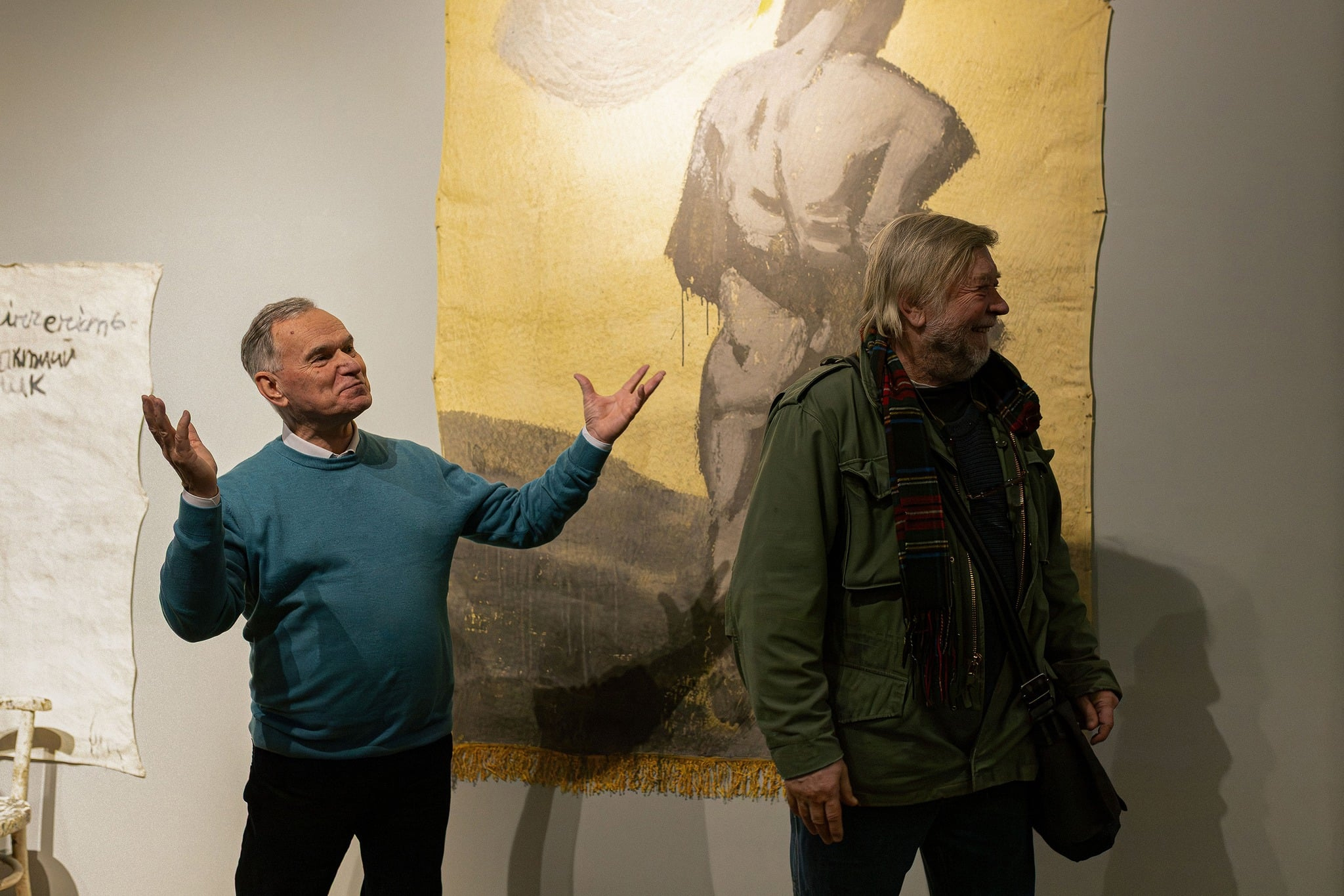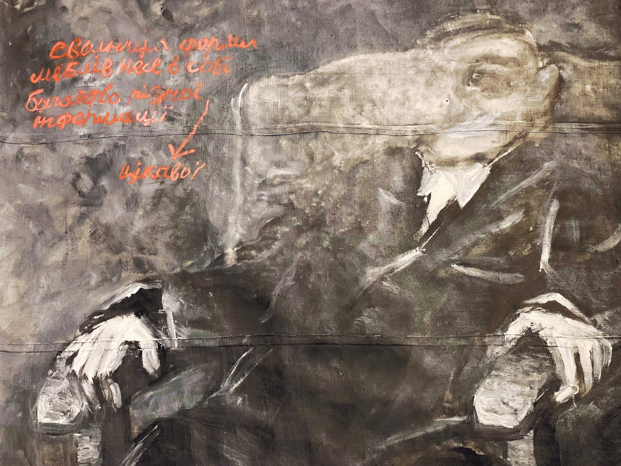 Однак це тільки перше, як на мене доволі поверхове прочитання його робіт. Іноді це буквально «прочитання» – бо на полотнах доволі писаного тексту – буквально цілих «послань». Хтось цим вдовольниться, ну і добре…