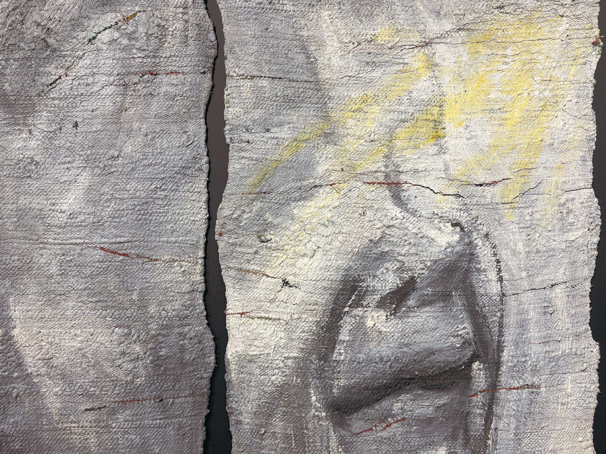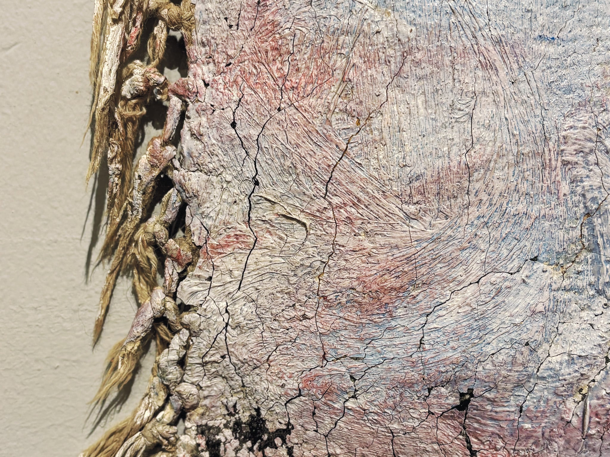 Ну і третя верства – це його обдерті до скелетів, до «речей у собі» килимки, церати та фанери. І ця третя верства найбільш сутнісна. Саме через її тактильність Сагайдаковський більш ніж наглядно показує своїми «полотнами» «внутрішнє», «сокровенне», «сутнісне» речей, якими для нього є, звісно, його артоб’єкти.