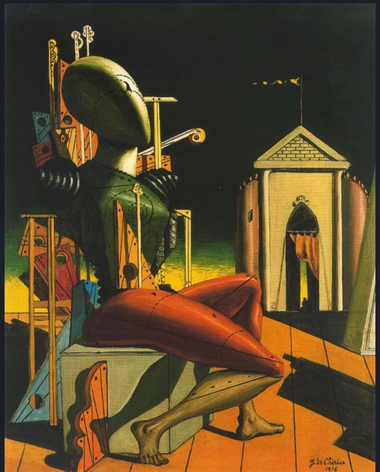 Сюрреаліст де Кіріко не просунувся далі від Шульца і теж представив «внутрішнє» Тут-присутнього як мертвотну технічну конструкцію:
