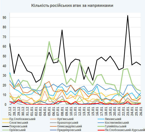 09:05 Інтенсивність російських атак на різних напрямках (за даними зведень Генерального штабу ЗСУ):
