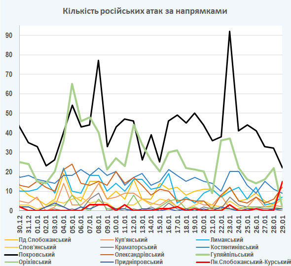 09:05 Інтенсивність російських атак на різних напрямках (за даними зведень Генерального штабу ЗСУ):