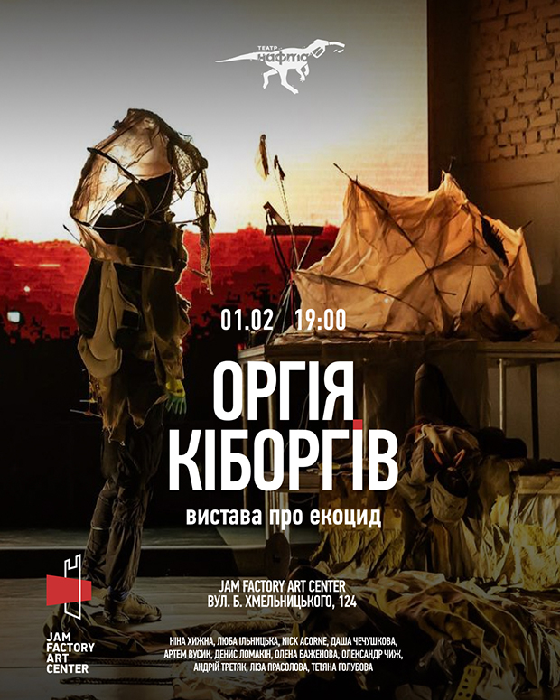 1 лютого о 19:00 у Jam Factory Art Center відбудеться показ унікальної вистави. Театр “Нафта” із Харкова вперше покаже у Львові виставу “Оргія кіборгів”.