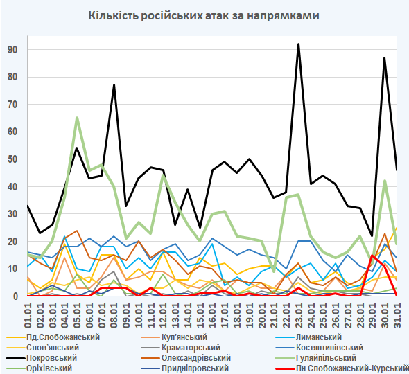 09:05 Інтенсивність російських атак на різних напрямках (за даними зведень Генерального штабу ЗСУ):