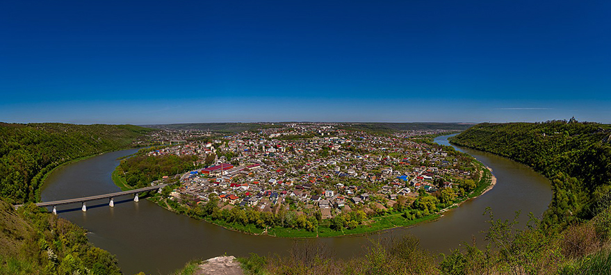 Щоби осягнути унікальність цього містечка, потрібно побачити його з високого берега ріки, переїхавши для цього в іншу область. Хоча що там область – ще кілька десятиліть тому для цього треба було переїжджати в іншу країну. Все це заради краєвиду меандру Дністра, півострова, який згори схожий на великий рондель. Тепер на ньому достигають найбільш впізнавані в наших краях за географічною назвою помідори, а в недалекому минулому тут пнувся до яскравого сонця Поділля виноград.