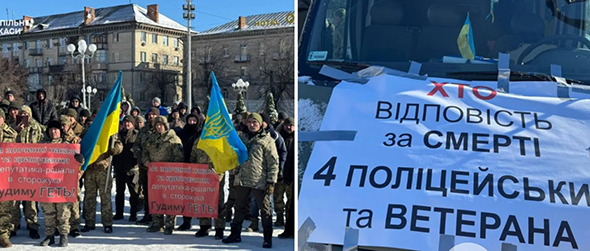 Підозрюваний у вчиненні вбивства – ветеран війни, загиблі – учасники бойових дій. Ці факти теж не викликають сумнівів, а з причетністю поліцейських до виконання «замовлення», отриманого від місцевого депутата, якому стрілець нібито колись перейшов дорогу, вимагають розібратися військові та знайомі загиблого. Вони влаштували мітинг у Черкасах, під час якого вимагали забезпечити справедливе розслідування всіх обставин, що призвели до загибелі п'яти людей. Безпосередньо відповідальним за те, що сталося, оранізатори акції протесту вважають начальника Головного управління Національної поліції у Черкаській області.
