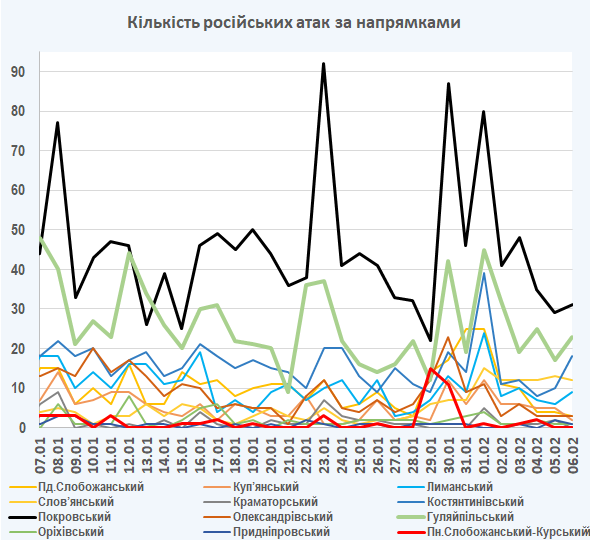 09:05 Інтенсивність російських атак на різних напрямках (за даними зведень Генерального штабу ЗСУ):