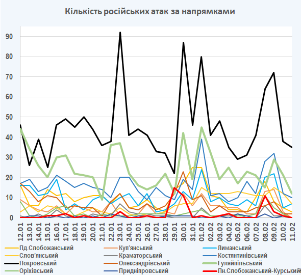 09:05 Інтенсивність російських атак на різних напрямках (за даними зведень Генерального штабу ЗСУ):