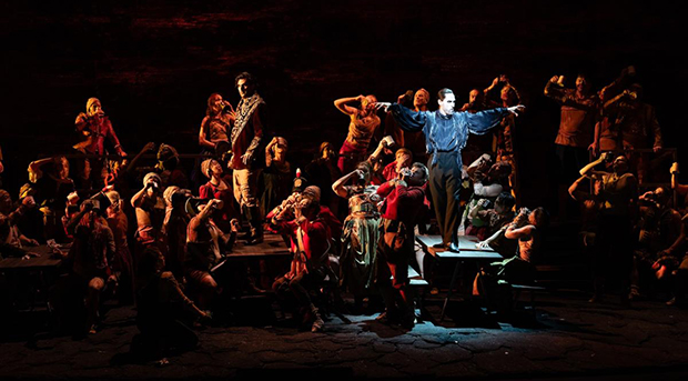 Chor und Kyle Ketelsen als Méphistophélès. Faust 2026 | Premiere am 8. Februar 2026. © Geoffroy Schied