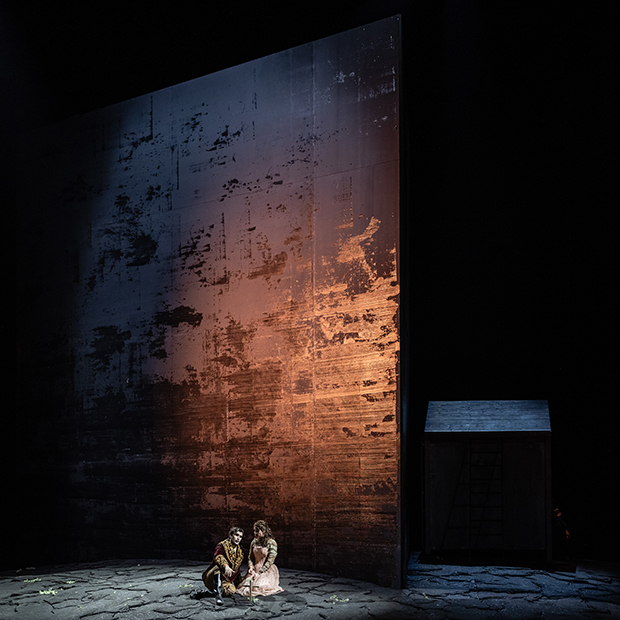 Щоб загострити відчуття її самотності, її наївність і довірливість, яка спантеличує не лише Фауста, а й самого Мефістофеля, Лотте де Беер разом із сценографом Крістофом Гетцером пішла шляхом візуальної редукції: на сцені – грандіозна металічна конструкція. Домінує геометрія замкнених площин. По усьому периметру сцени височіє роздвоєна металева стіна, яка то розсувається, то замикає простір. Картина пронизлива, холодна, безжальна. Наче вістря леза стіна намертво встромлена у підлогу, оформлену на кшталт висохлої потрісканої земної кулі. Напевно, Лотте де Беер або її сценограф Крістоф Гетцер були на прем’єрі української продукції Opera aperta GAIA-24. Opera del Mondo Іллі Разумейка і Романа Григоріва. Сценічна цитата «землі» зчитується елементарно: романтична опера Гуно перетворюється на оперу про війну і кризу світу.