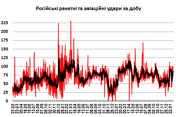 09:15 Інтенсивність російських ракетних та авіаційних ударів по позиціях наших військ та населених пунктах (за даними зведень Генерального штабу ЗСУ):