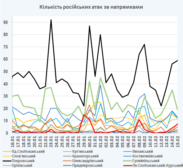 09:05 Інтенсивність російських атак на різних напрямках (за даними зведень Генерального штабу ЗСУ):