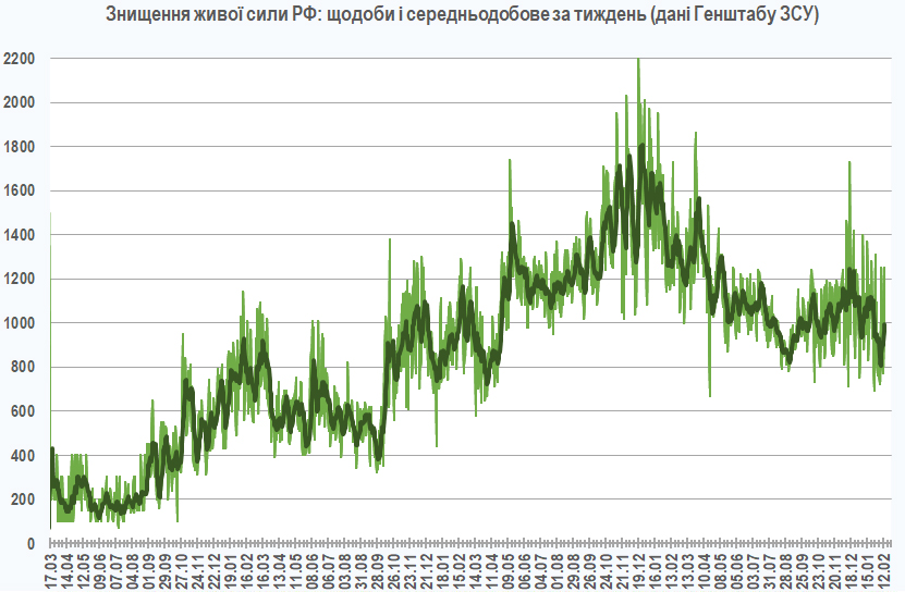 За уточненою інформацією, вчора загарбники завдали по території України 52 авіаційних ударів, скинувши 170 керованих авіаційних бомб. Крім цього, залучили для ураження 4316 дронів-камікадзе та здійснили 2875 обстрілів позицій наших військ і населених пунктів, зокрема 83 – з реактивних систем залпового вогню.