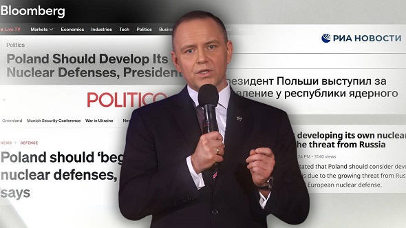 Президент Польщі Кароль Навроцький заявив під час інтерв’ю телеканалу Polsat News, що виступає за створення країною власної ядерної зброї на тлі зростаючої російської загрози. За його словами, Польща повинна йти шляхом розвитку власного ядерного потенціалу, дотримуючись усіх міжнародних норм.