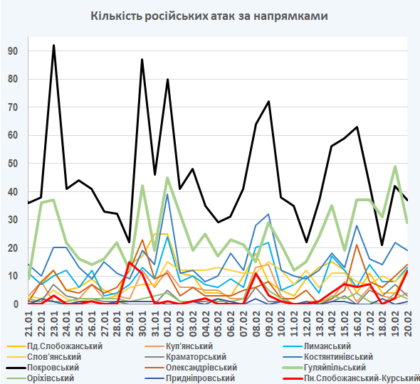 09:05 Інтенсивність російських атак на різних напрямках (за даними зведень Генерального штабу ЗСУ):