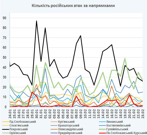 09:05 Інтенсивність російських атак на різних напрямках (за даними зведень Генерального штабу ЗСУ):