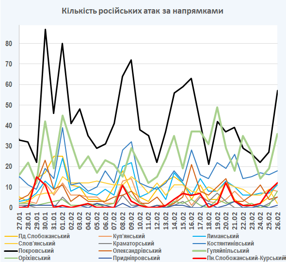 09:05 Інтенсивність російських атак на різних напрямках (за даними зведень Генерального штабу ЗСУ):