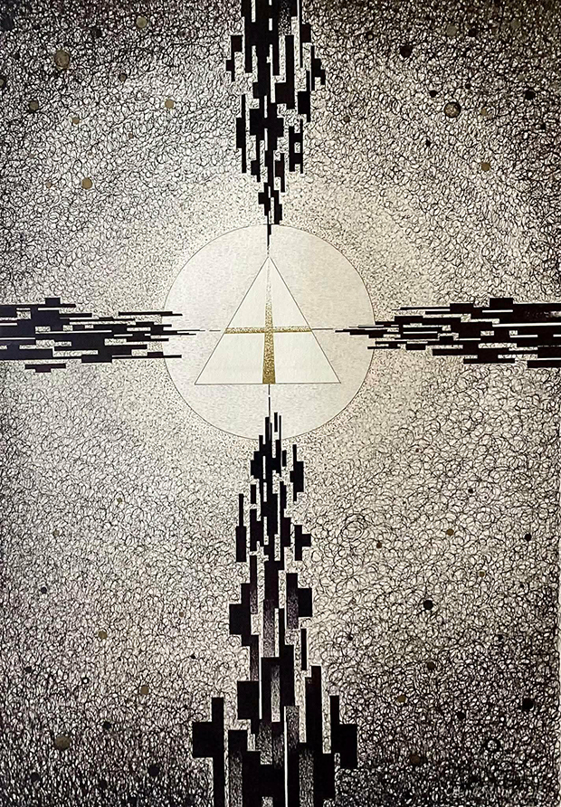 У першій частині твору, названій «Гравітація думки», передано споглядання вічності чи якого вічного образу, процесу (чи не сотворення? Хоч на думку приходять навіть окультні християнські символи), причому споглядання те невідривне (цим, мабуть, пояснюється назва частини), але й не застигле, динамічне, воно чергується з хвилями активізації руху і призводить до раптової трагічної кульмінації. Інтонаційним мотивом, який віддзеркалює невідривність і нескінченність того процесу є гамоподібні короткі поспівки, що з’являються в партіях різних інструментів і не дають можливості вирватися з їх магнетичної сили.