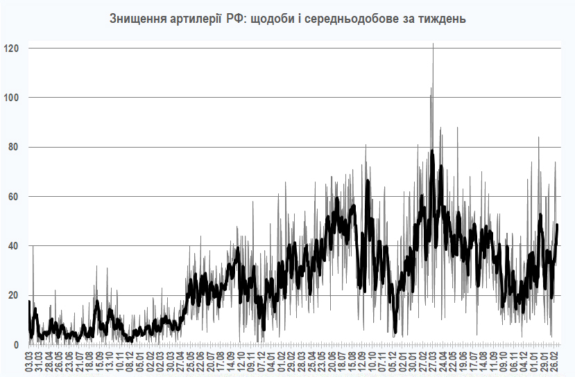 1230,4% артилерійських систем (з них 9,2% за минулий тиждень),