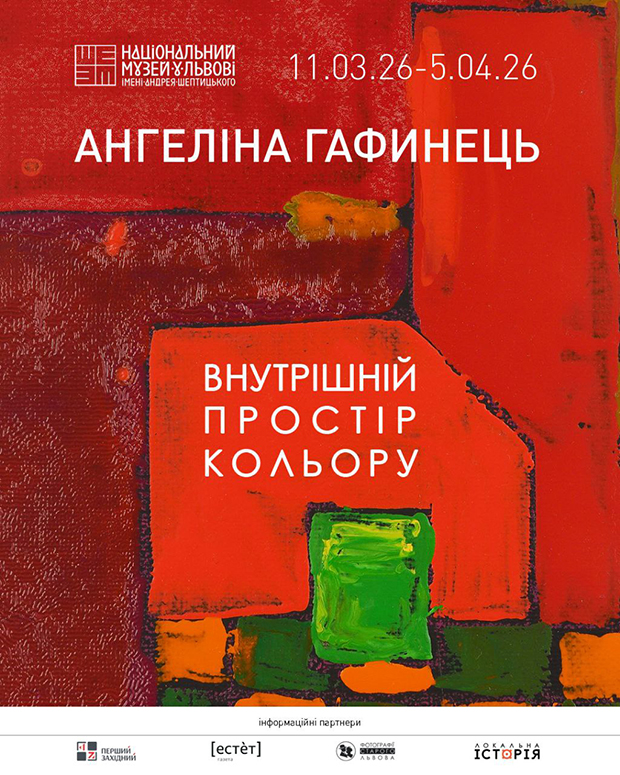 У середу, 11 березня, о 16:00 у Національному музеї у Львові імені Андрея Шептицького (головна будівля, проспект Свободи, 20) відбудеться відкриття виставки Ангеліни Гафинець «Внутрішній простір кольору», яка триватиме до 5 квітня.