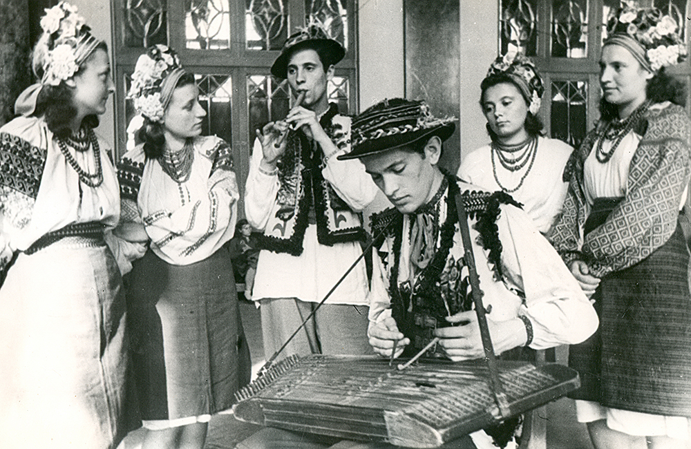 Іванна Франко, студенти політехніки, на цимбалах грає Мирослав Галущак (1947 р.)