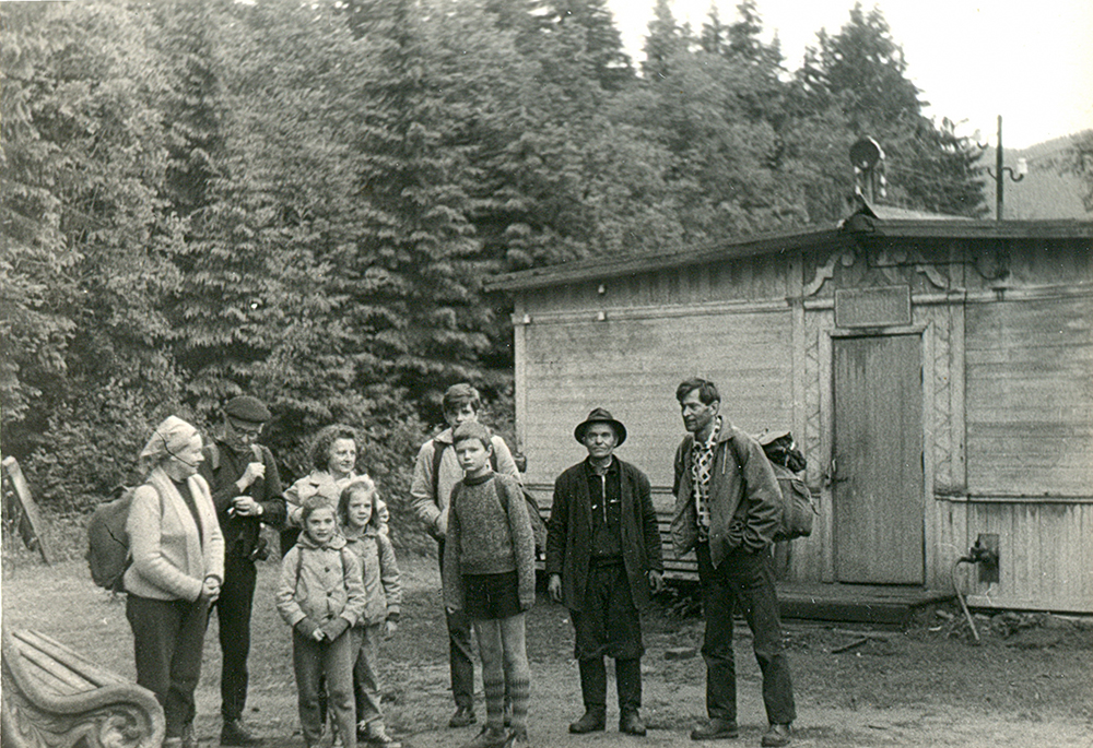 Похід по Чорногорі. Зіновія Франко, Юрій Сітницький, Іванна Франко та дві її доньки, Адріана і Мар'яна, Петро Галущак, Андрій Юрачківський, сторож бази і Мирослав Галущак