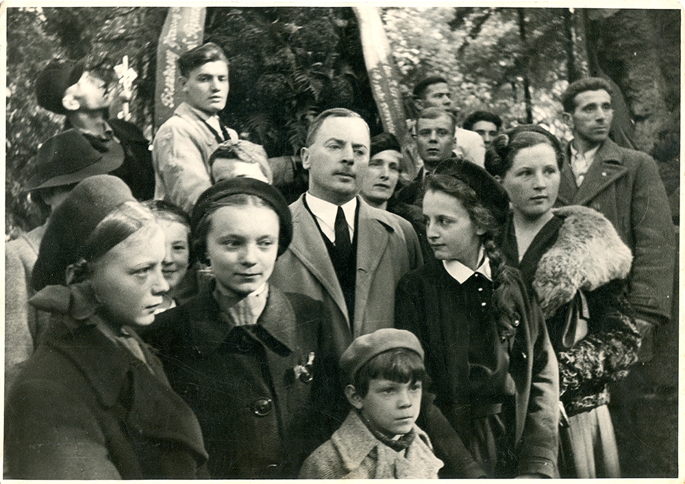 Петро Франко з дружиною і доньками Вірою та Іванною і діти Тараса Франка Люба, Зеня і Роланд на відкритті пам'ятника