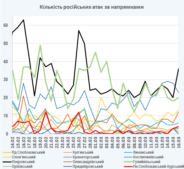 09:05 Інтенсивність російських атак на різних напрямках (за даними зведень Генерального штабу ЗСУ):