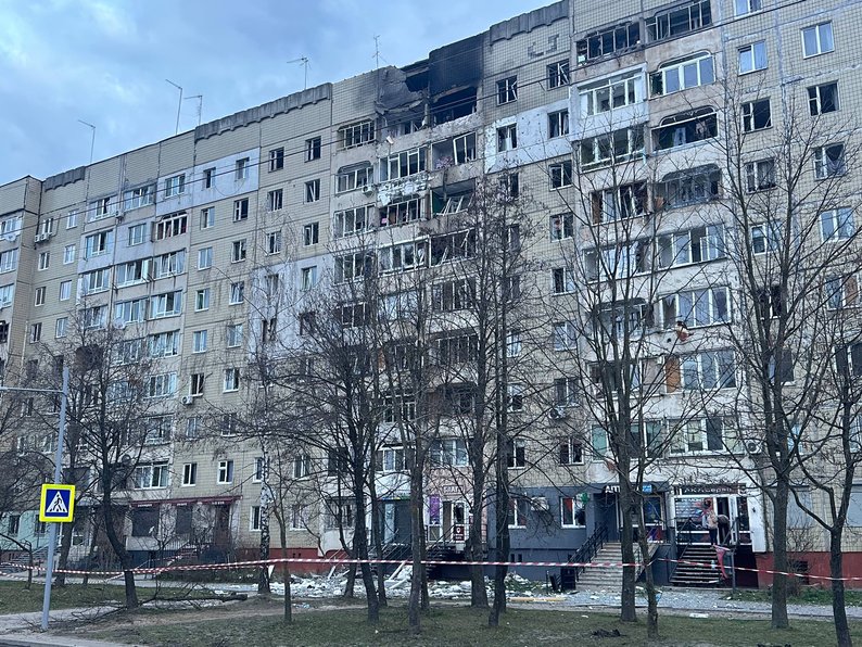 Два шахеди влучили з двох сторін одного житлового будинок на проспекті Червоної Калини, 103 на Сихові, пошкоджено 19 будинків.