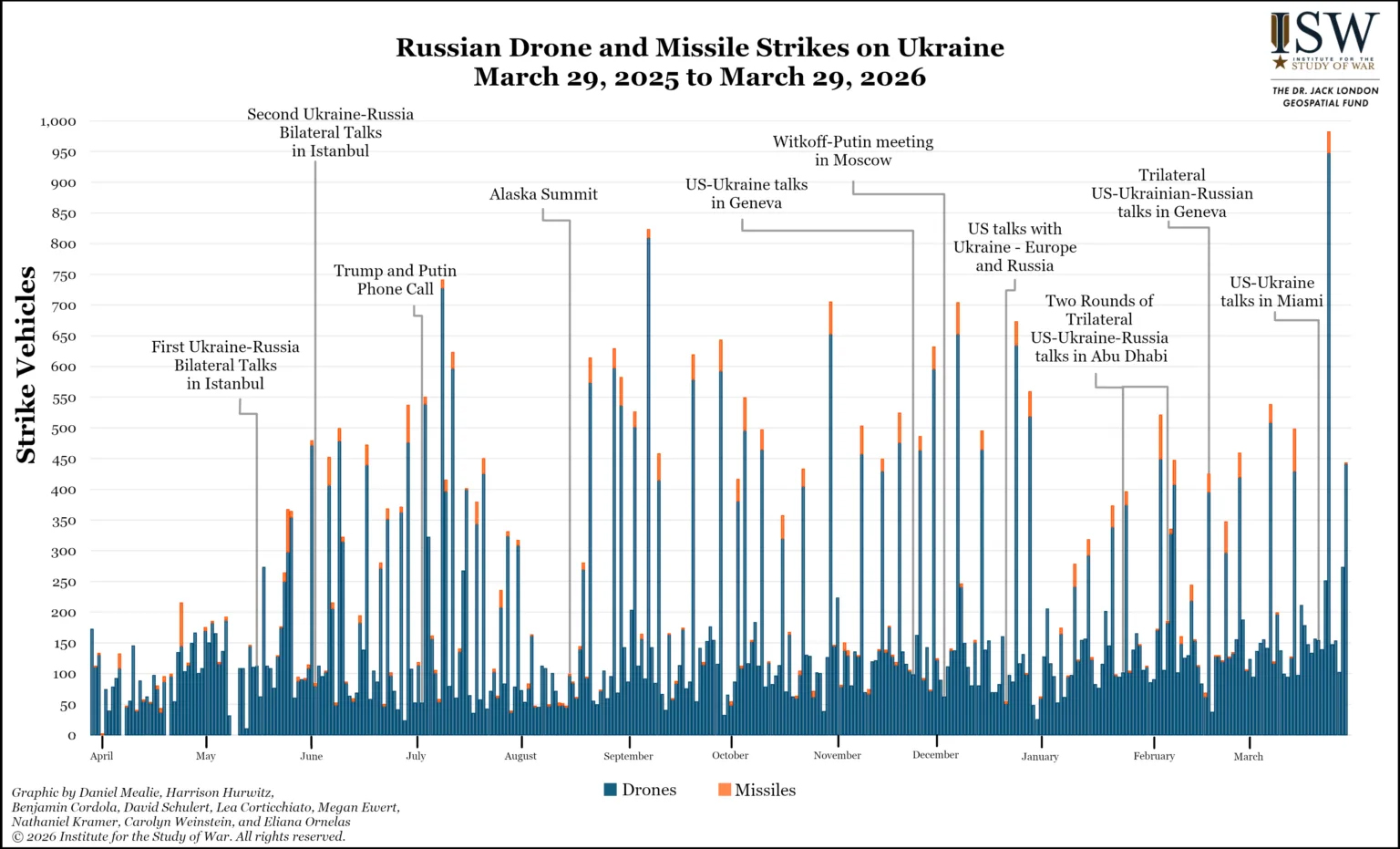 • 29 березня російські війська також завдали великого удару плануючими бомбами по Краматорську в Донецькій області, що спричинило значні жертви серед цивільного населення.