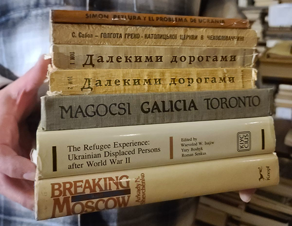 «У нас велика колекція діаспорної літератури, і ми вибирали для себе видання, яких ще не маємо. Вони потенційно цікаві дослідникам історії й літератури діаспори та загалом книговидання. З найцікавішого: видання міжвоєнного часу, надруковані або на заході України, або за океаном, яких і небагато збереглося. Траплялося так, що у фондах Наукової бібліотеки була якась частина кількатомного видання, а завдяки дарунку Товариства ми отримали решту. Так було, наприклад, з “Українсько-англійським словником” за редакцією Василя Лева, виданим у другій половині 1940-х у німецьких таборах. Серед тих, що повернулись до України і тепер у нашій бібліотеці – "Вступ до історичної науки" Михайла Брайчевського. Окремий цікавий пласт – англомовні видання, не обов’язково українських авторів чи на українську тематику, але які потенційно можуть бути цікавими для читачів. Це книги Сартра, Мілоша, історичні дослідження західних авторів», – розповів вчений секретар Наукової бібліотеки ЛНУ Ігор Петрій і додав, що частина переданих видань вже у вільному доступі бібліотеки.