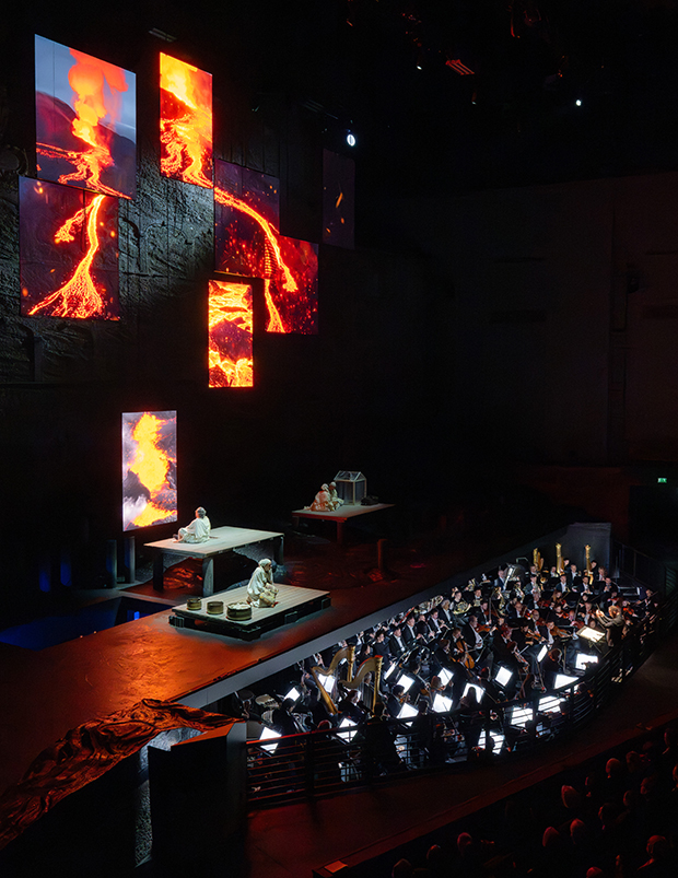 На сцені дія відбувається на поверхні діючого вулкана у стані ремісії. Обабіч широкої сцени Фельзенрайтшуле все ще димить. Очевидно й на гарячу поверхню застиглої лави небезпечно ступати.