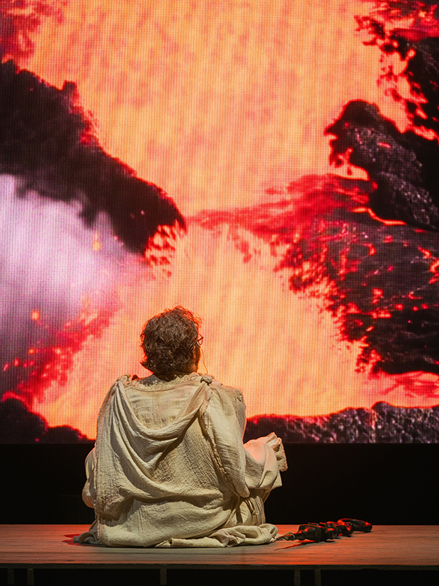 Зауважу, що режисер перманентно оперує алогізмами (не можу стверджувати, що навмисне): в Африці – зима… чи це вічна зима землі після виверження вулкана? Останній льодовик застиг на нерівній площині гарячого вулкана, що постійно димує. А тим часом надломлений пережитими катастрофами Вотан (як завжди неперевершений, вдумливий, рефлексуючий Крістіан Ґергагер, вокально і образно не-вотанівський, віддалений від початкового уявлення про силу і велич верховного бога) споглядає, як палаюча лава заливає віддалені ландшафти.