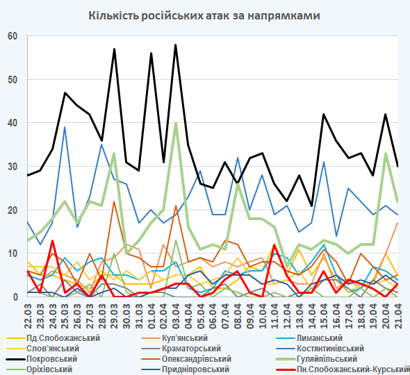 09:05 Інтенсивність російських атак на різних напрямках (за даними зведень Генерального штабу ЗСУ):