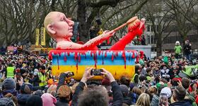Тілі створював карнавальні платформи з комічним зображенням російського диктатора.